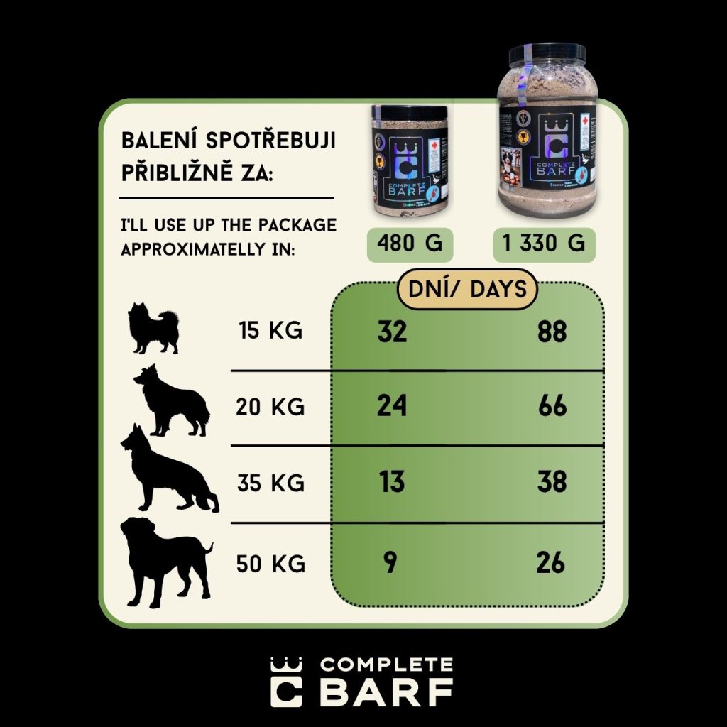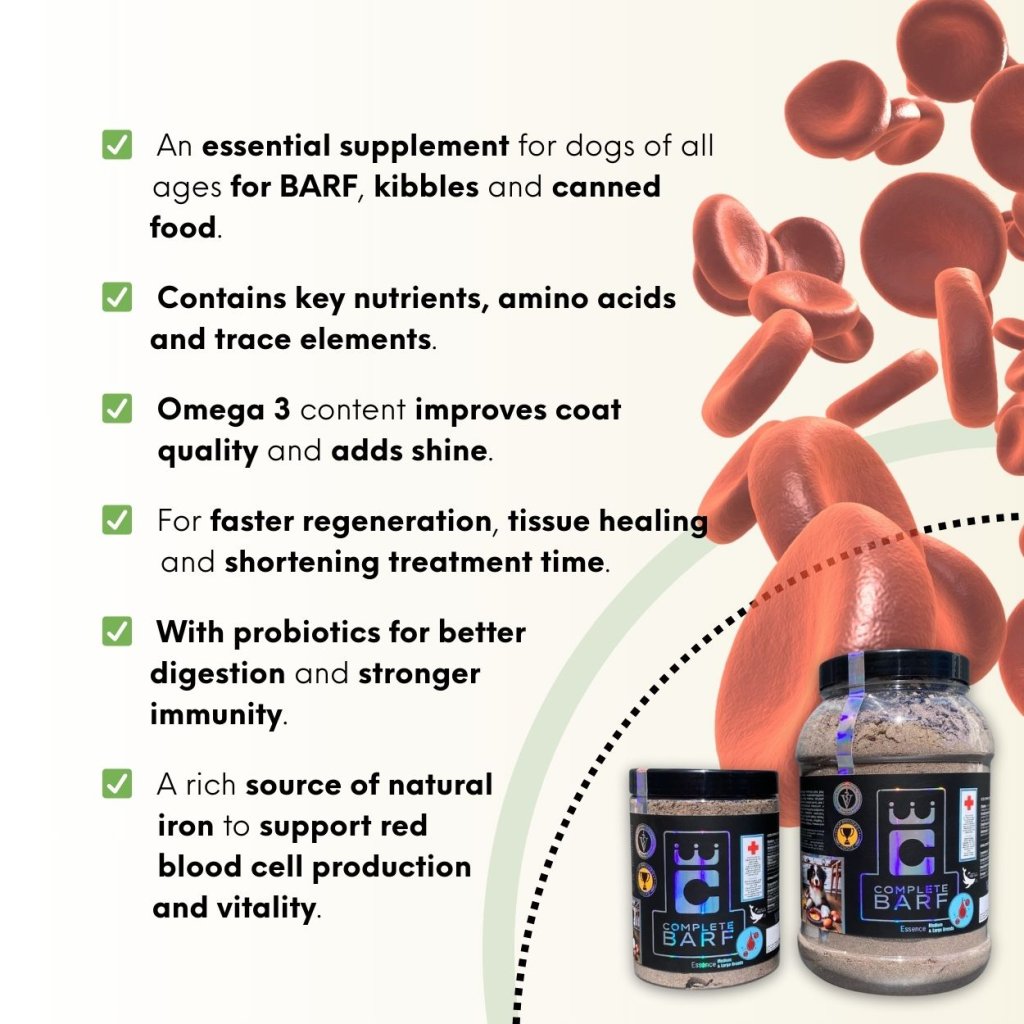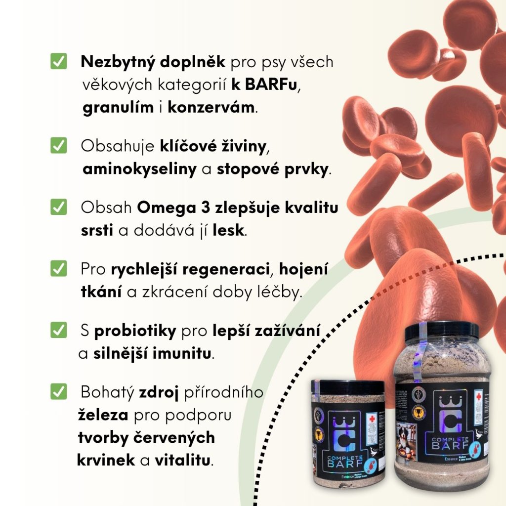 Complete BARF Essence pro střední a velká plemena Doplnění klíčových živin a stopových prvků - Silnější imunita - Rychlejší regenerace - Krásná srst
