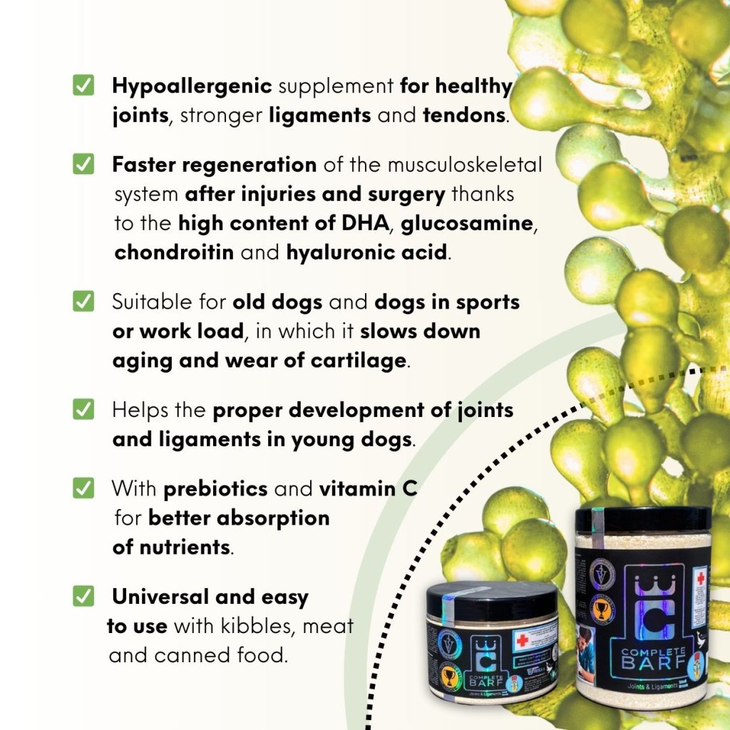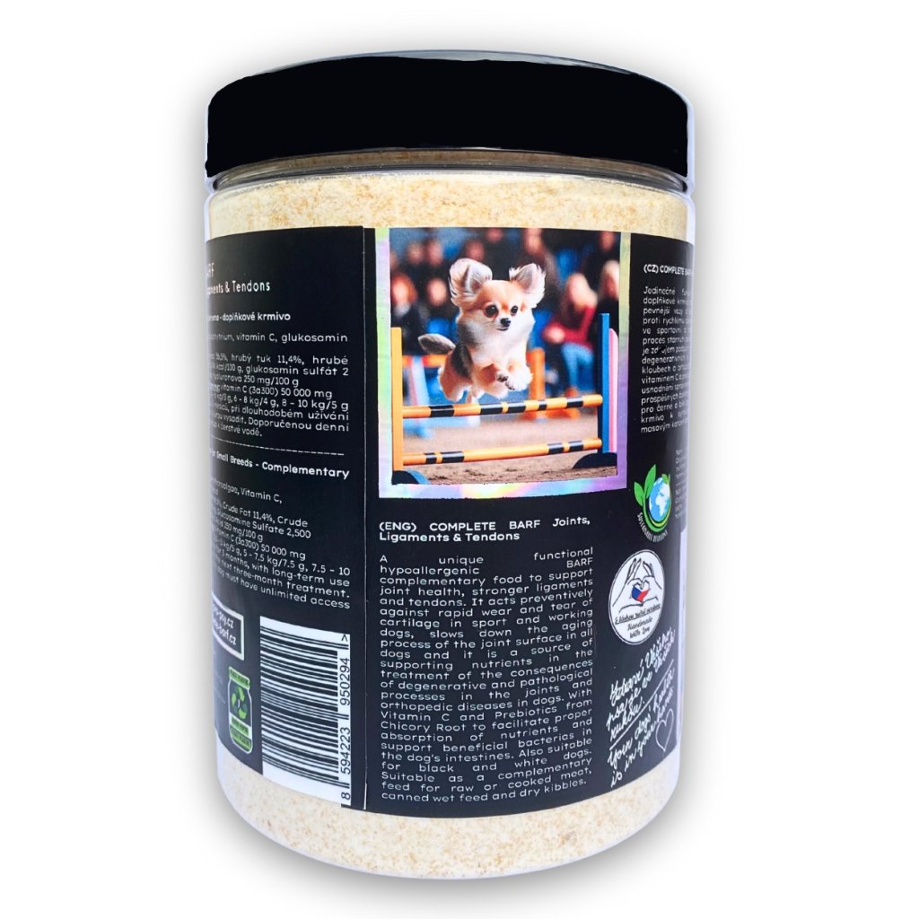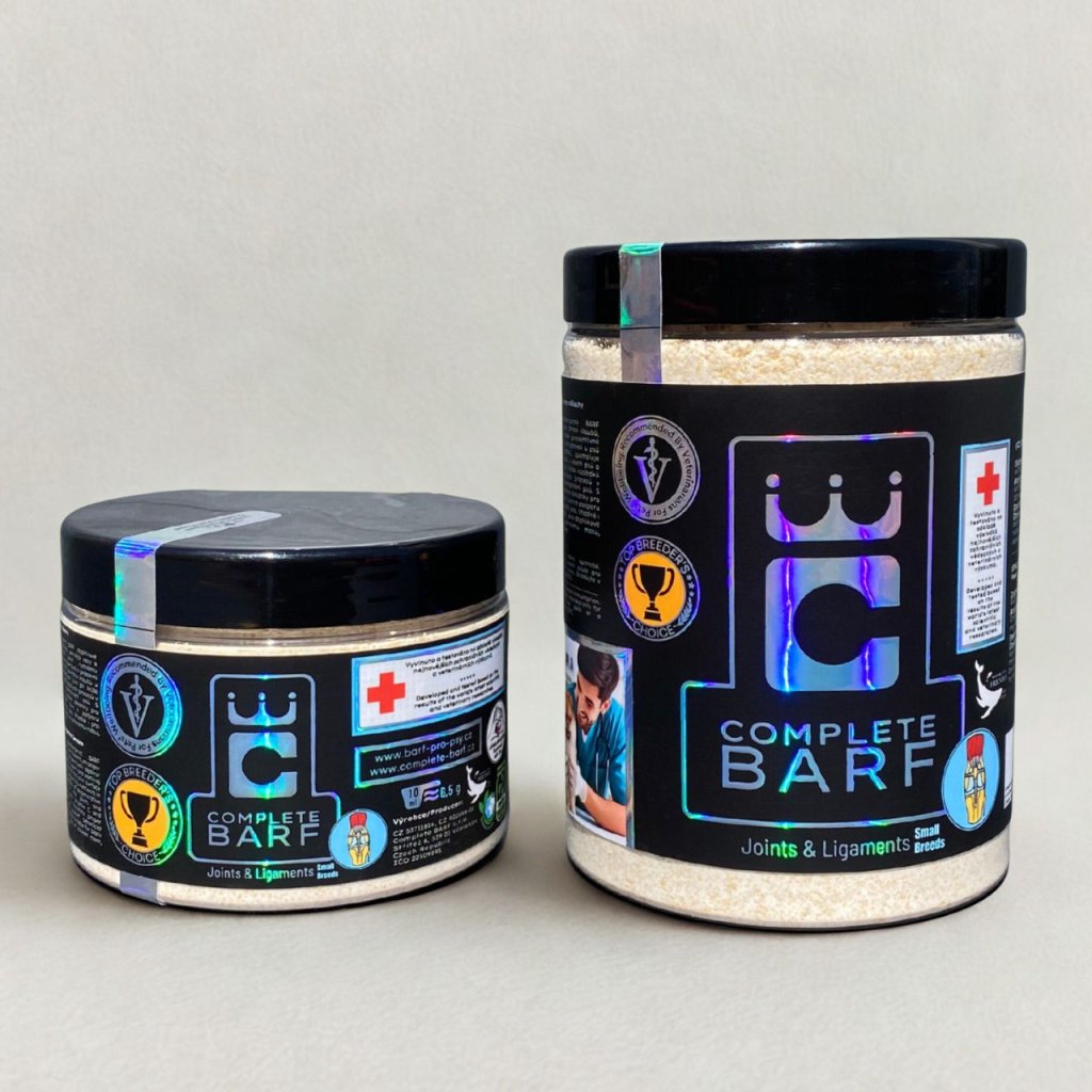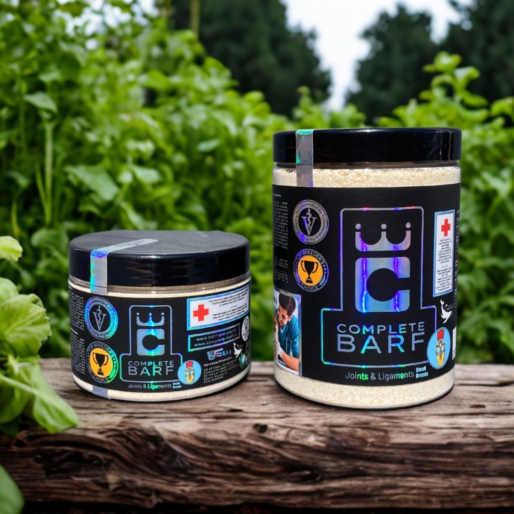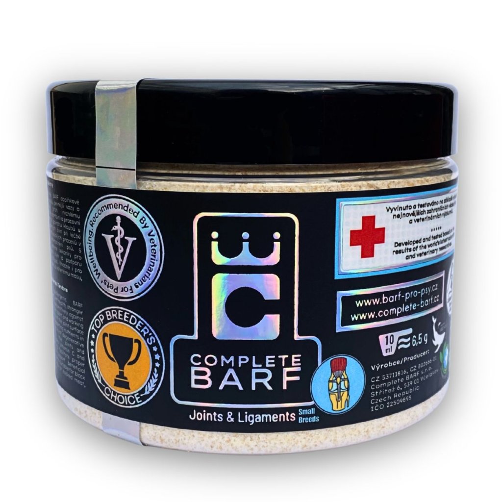 Complete BARF Klouby a vazy pro malá plemena Podpora správného vývoje kloubů, vazů a šlach - Zpomaluje stárnutí a opotřebování chrupavek - Rychlejší regenerace po úrazech a operacích