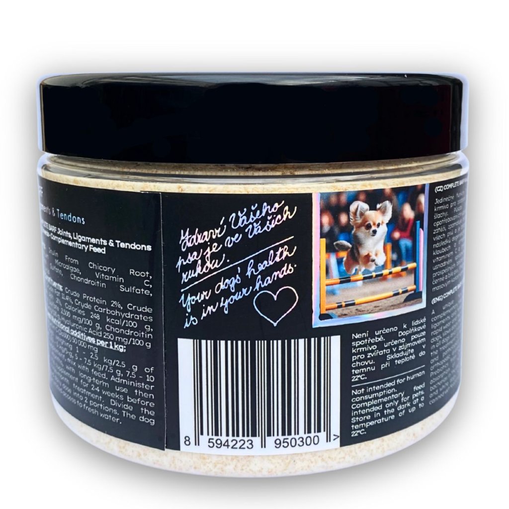 Naše receptura cíleně působí preventivně proti rychlému opotřebování chrupavek u psů ve sportovní a pracovní zátěži – ať už jde o agility, nebo jen nadšené aportování na zahradě.