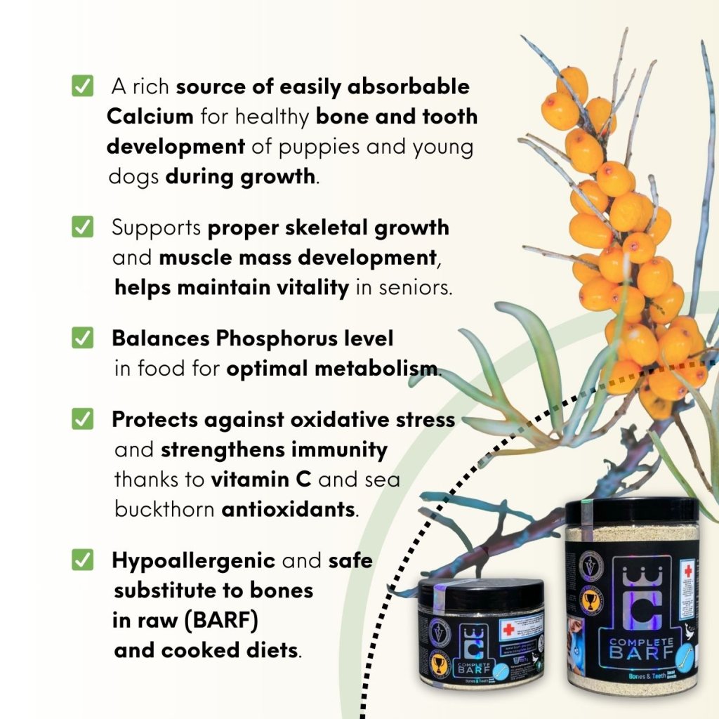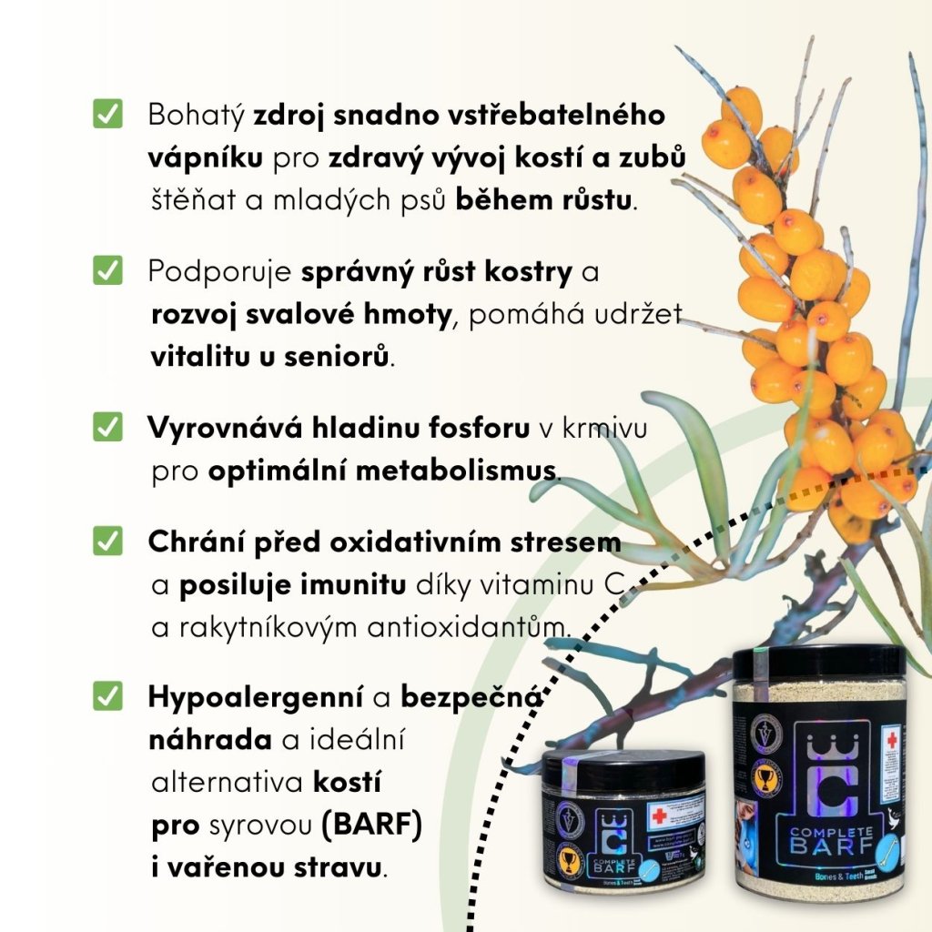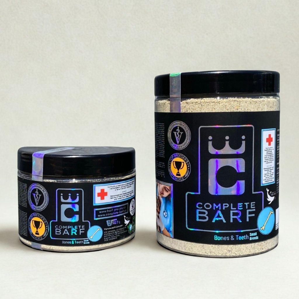 Complete BARF Kosti a zuby pro malá plemena Podpora správného vývoje kostí a zubů - Skvělý zdroj vápníku a minerálů - Vyrovnání hladiny fosforu v krmivu