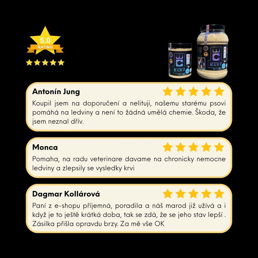Ať už je základem krmné dávky BARF pro psy, vařená strava nebo speciální veterinární granule, tento doplněk se snadno integruje a zefektivňuje nastavenou ledvinovou dietu u psa. Hypoalergenní složení zaručuje skvělou snášenlivost.