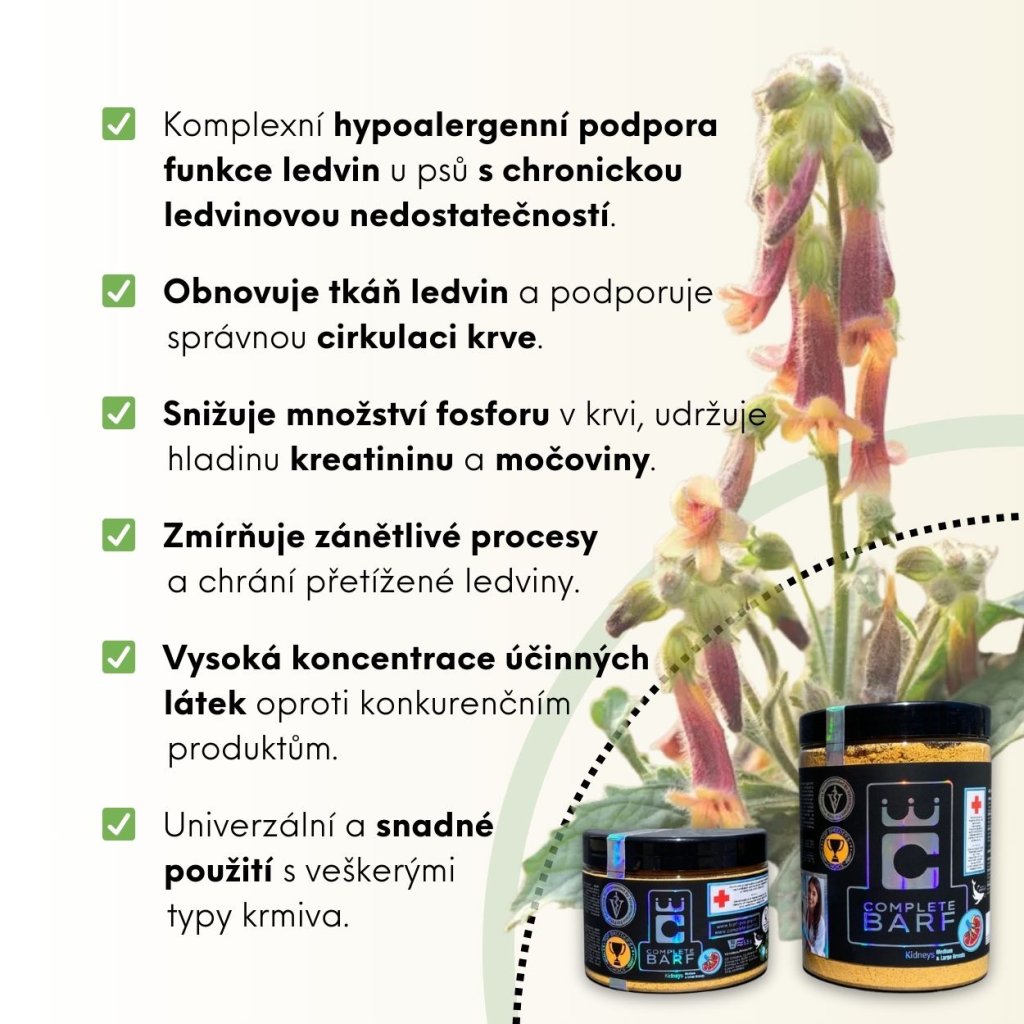 Complete BARF Ledviny pro střední a velká plemena Podpora funkce ledvin - Při chronické ledvinové nedostatečnosti - Snižuje množství fosforu v krvi - Zmírňuje zánětlivé procesy