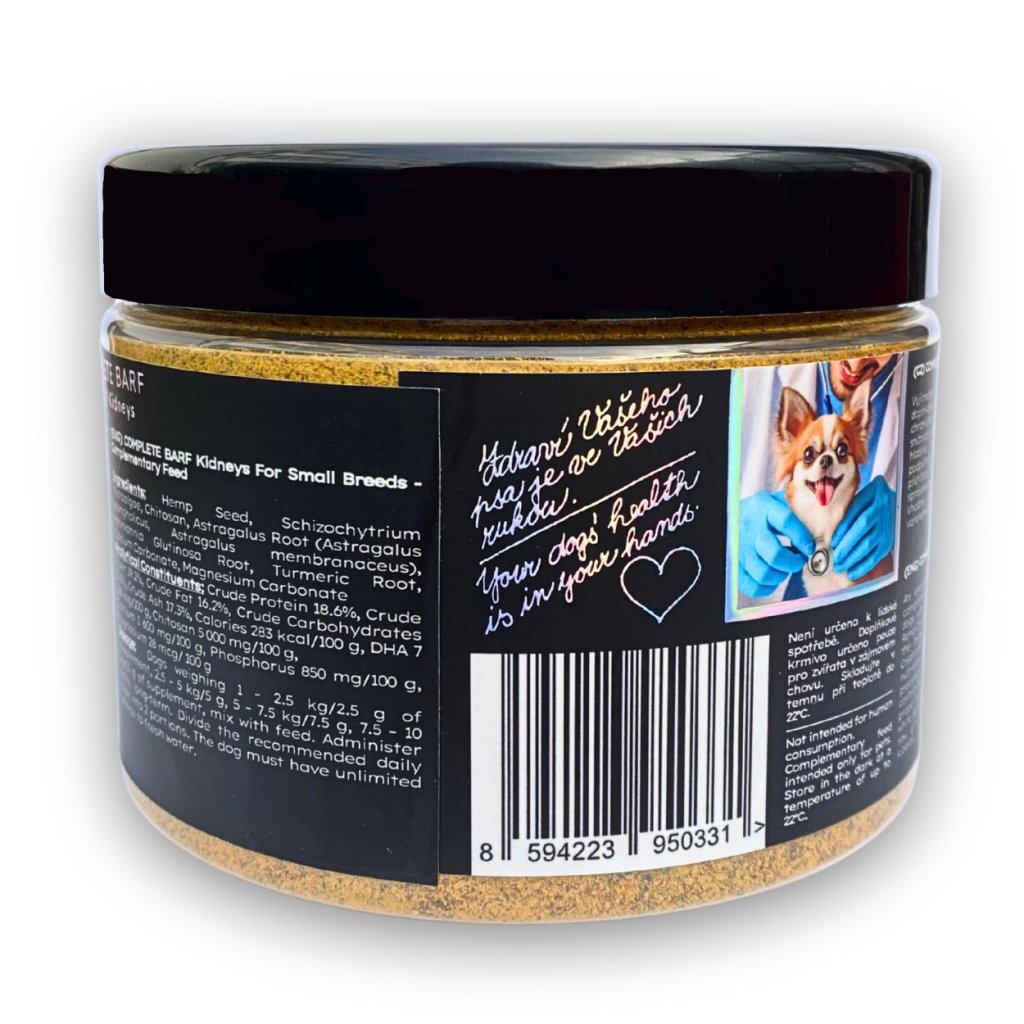 Complete BARF Ledviny pro malá plemena Podpora funkce ledvin - Při chronické ledvinové nedostatečnosti - Snižuje množství fosforu v krvi - Zmírňuje zánětlivé procesy