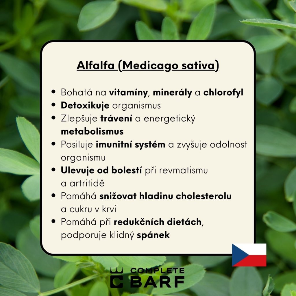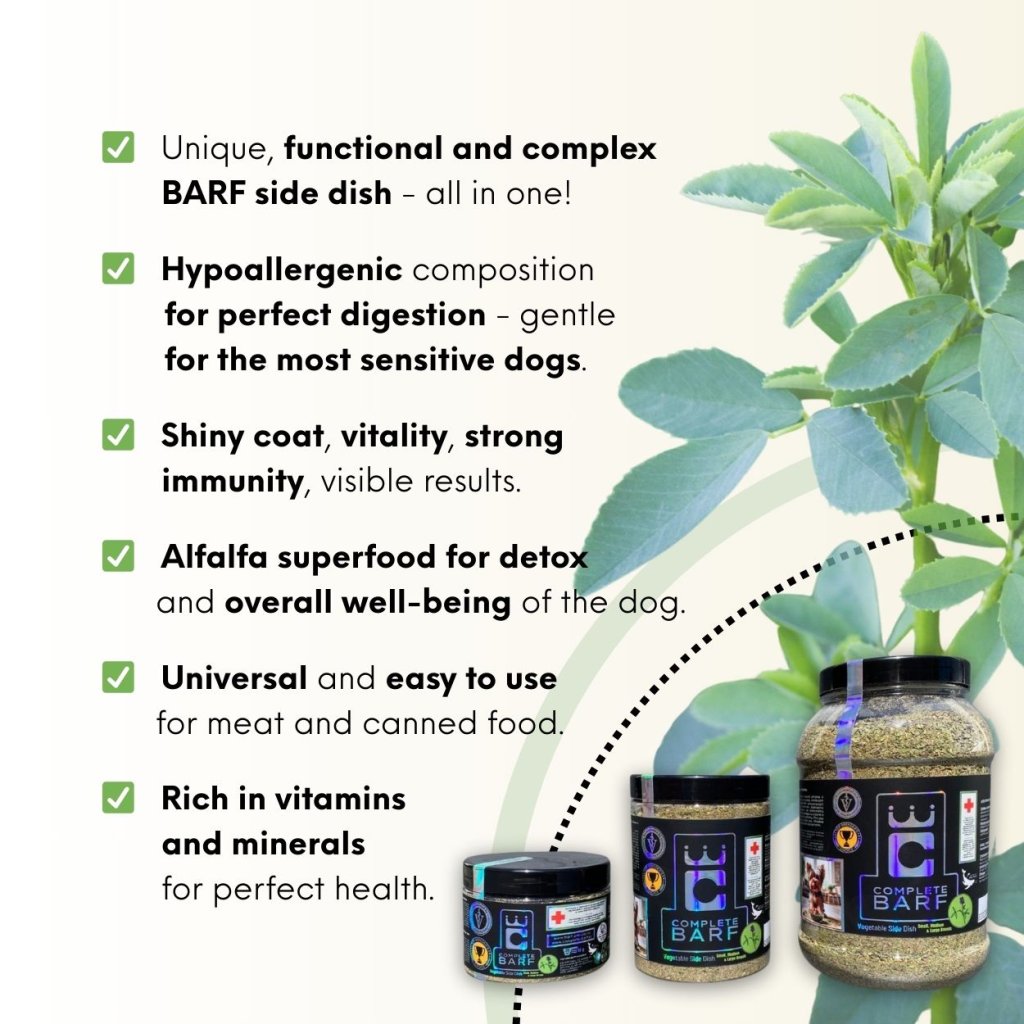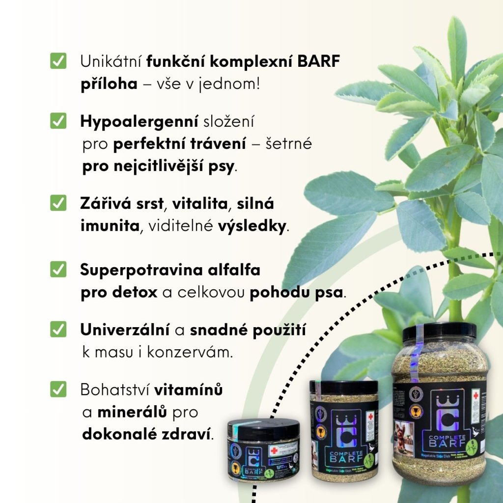 Complete BARF Rostlinná příloha s alfalfou Pro BARF i granule: Konec pojídání trávy - Podpora trávení, imunity a detoxikace - Pro krásnou a zdravou srst