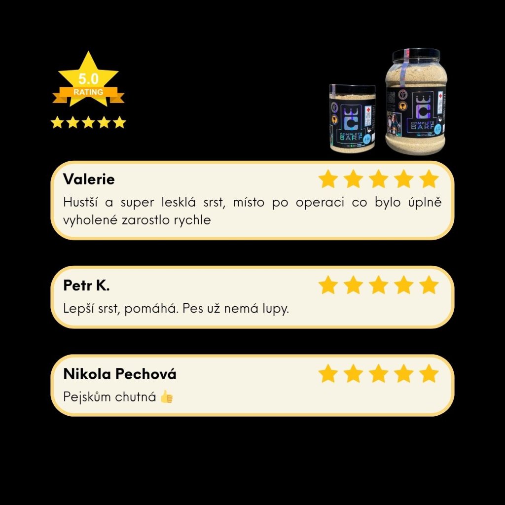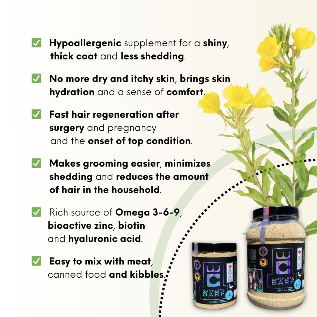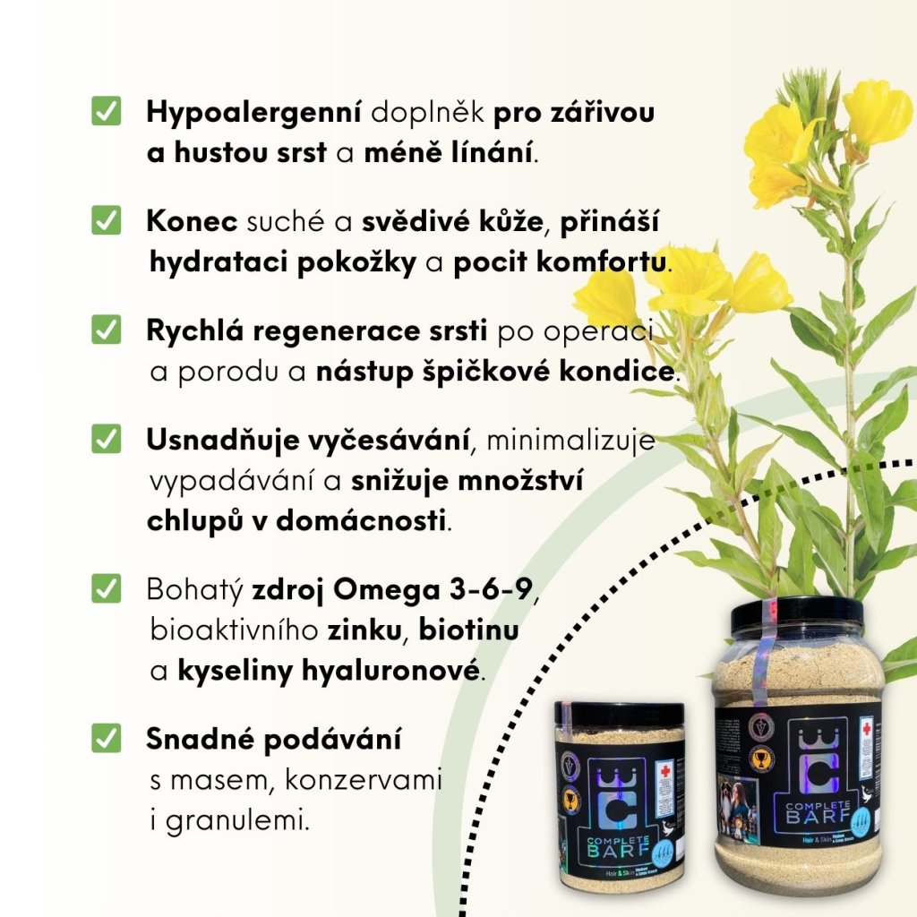 Complete BARF Srst a kůže pro střední a velká plemena Špičková podpora krásné a zdravé srsti a kůže - Nadměrné línání - Suchá a svědivá kůže - Snazší vyčesávání