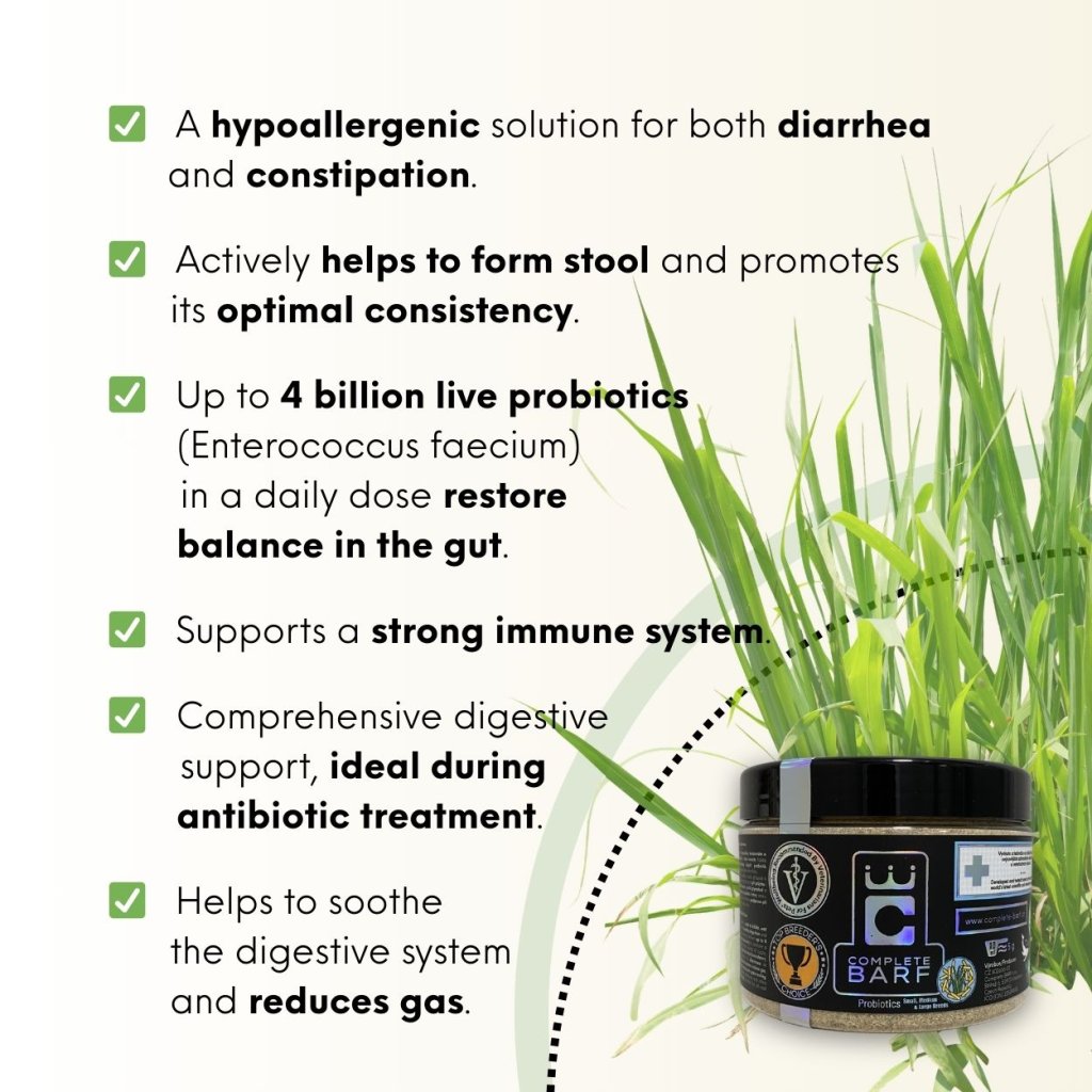 Trápí vašeho psa nevyzpytatelné zažívání? Řešíte často průjem u psa, zácpu, plynatost nebo opakované potíže s análními žlázkami? Vraťte jeho trávicí systém do perfektní rovnováhy díky synergii miliard živých probiotik a funkční vlákniny z psyllia, jablek a speciální směsi travin. Tento produkt je jedním z klíčových doplňků stravy pro psy, který by neměl chybět v žádné psí lékárničce.